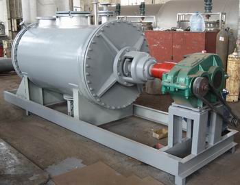 | 【真空耙式干燥機(jī)】 具有結(jié)構(gòu)簡單,操作方便,使用周期長,性能穩(wěn)定可靠,蒸汽耗量小,適用性能強(qiáng),產(chǎn)品質(zhì)量好,特別適用于不耐高溫、易燃、調(diào)溫下易氧化的膏狀物料的干燥,該機(jī)經(jīng)用戶長期使用證明是一良好的干燥設(shè)備。原理:被干燥物料從殼體上方正中間加入,在不斷正反轉(zhuǎn)動的耙齒的攪拌下,物料軸向來回走動,與殼體內(nèi)壁接觸的表面不斷更新,受到蒸汽的間接加熱,耙齒的均勻攪拌,粉碎棒的粉碎,使物料表面水分更有利的排出,氣化的水分經(jīng)干式除塵器、濕式除塵器、冷凝器,從真空泵出口處放空。結(jié)構(gòu):真空耙式干燥機(jī)的主要部件 |